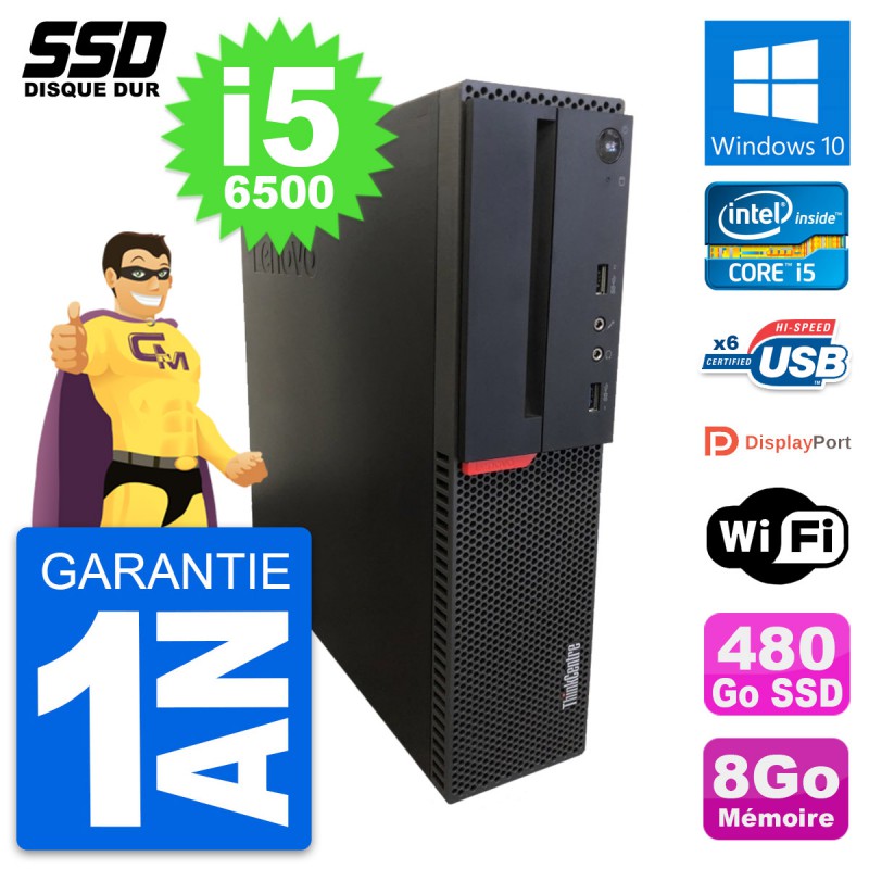PC Lenovo ThinkCentre M700 SFF - Intel Core i5-6500 3.2 Ghz (6 Mo) - 8 Go DDR4 - SSD 480 Go - Clef Wifi USB - Windows 10 - Garantie 1 an.