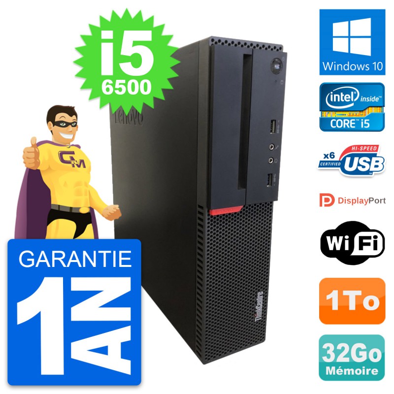 PC Lenovo ThinkCentre M700 SFF Intel i5-6500 RAM 32Go Disque 1To Windows 10 Wifi