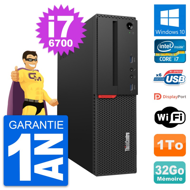 PC Lenovo ThinkCentre M700 SFF Intel i7-6700 RAM 32Go Disque 1To Windows 10 Wifi