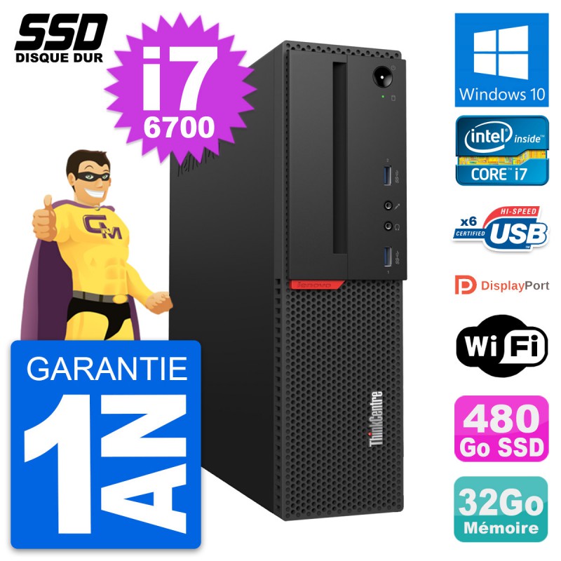 PC Lenovo ThinkCentre M700 SFF Intel i7-6700 RAM 32Go SSD 480Go Windows 10 Wifi