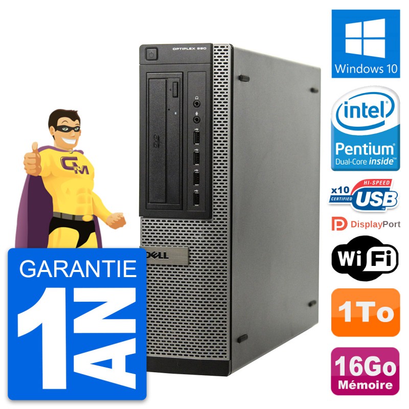 PC Dell OptiPlex 990 DT - Intel Pentium Dual-Core G630 2.7 Ghz (3 Mo) - 16 Go DDR3 - Disque Dur 3,5" 1 To - Graveur DVD - Clef Wifi USB - Windows 10 - Garantie 1 an.