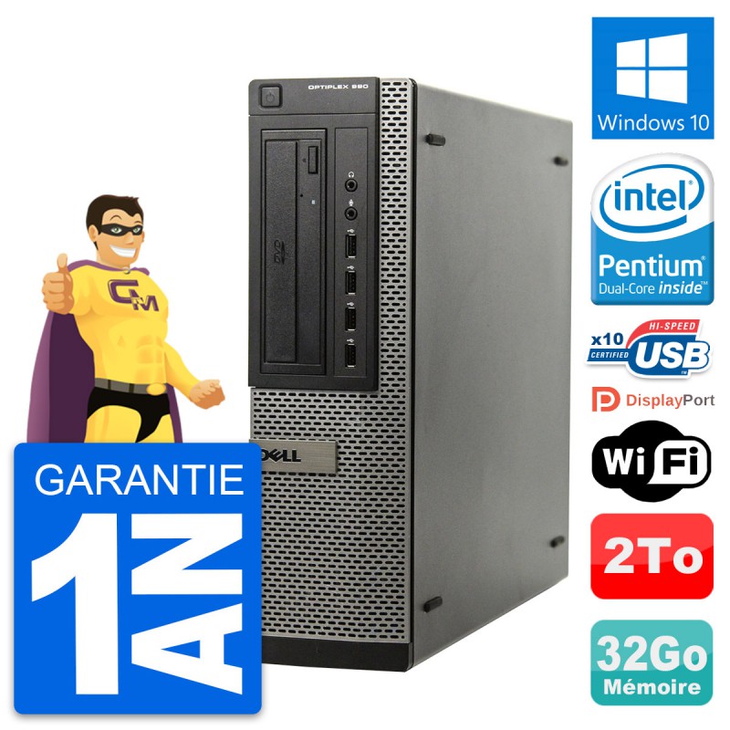 PC Dell OptiPlex 990 DT - Intel Pentium Dual-Core G630 2.7 Ghz (3 Mo) - 32 Go DDR3 - Disque Dur 3,5" 2 To - Graveur DVD - Clef Wifi USB - Windows 10 - Garantie 1 an.
