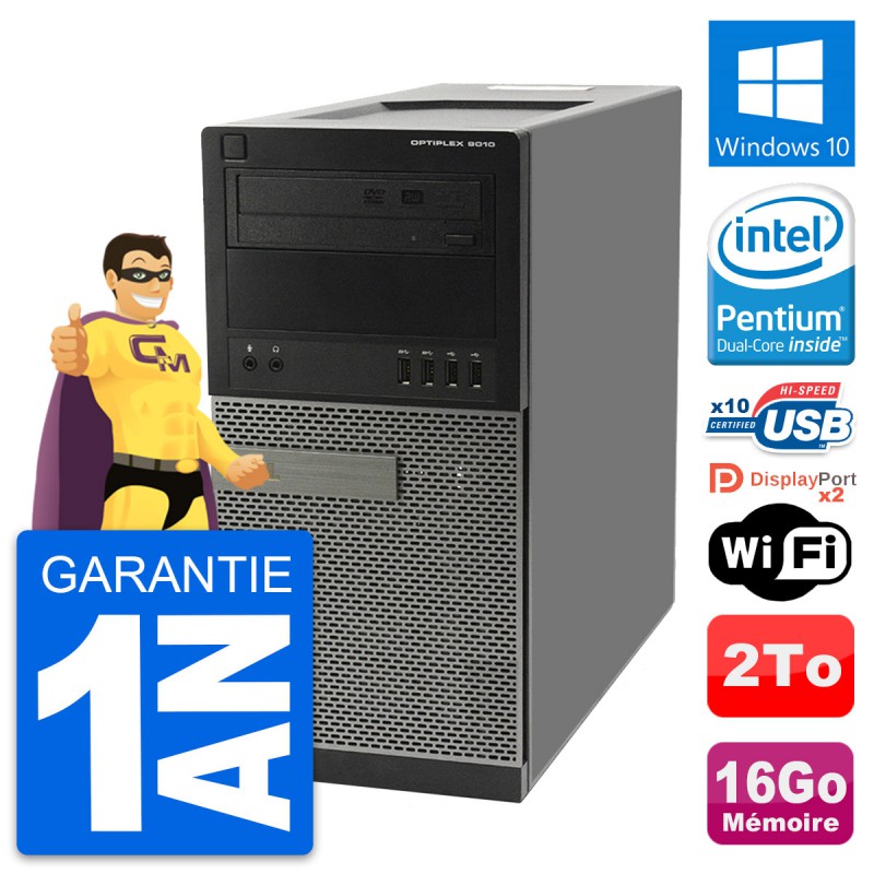 PC Tour Dell OptiPlex 9010 - Intel Pentium Dual-Core G630 2.7 Ghz (3 Mo) - 16 Go DDR3 - Disque Dur 3,5" 2 To - Graveur DVD - Clef Wifi USB - Windows 10 - Garantie 1 an.