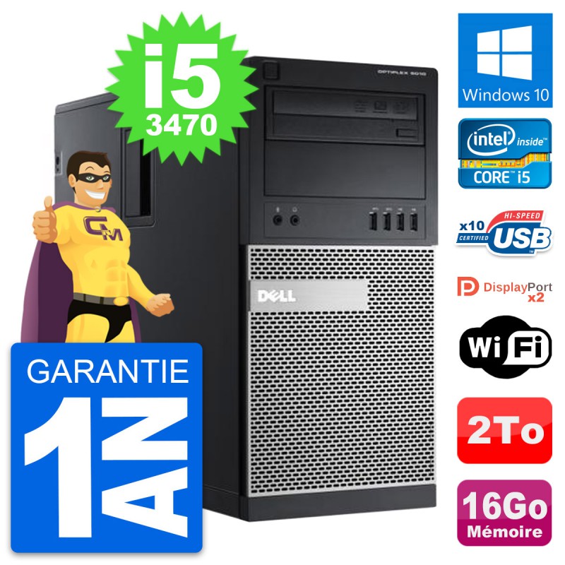 PC Tour Dell OptiPlex 9010 - Intel Core i5-3470 3.2 Ghz (6 Mo) - 16 Go DDR3 - Disque Dur 3,5" 2 To - Graveur DVD - Clef Wifi USB - Windows 10 - Garantie 1 an.