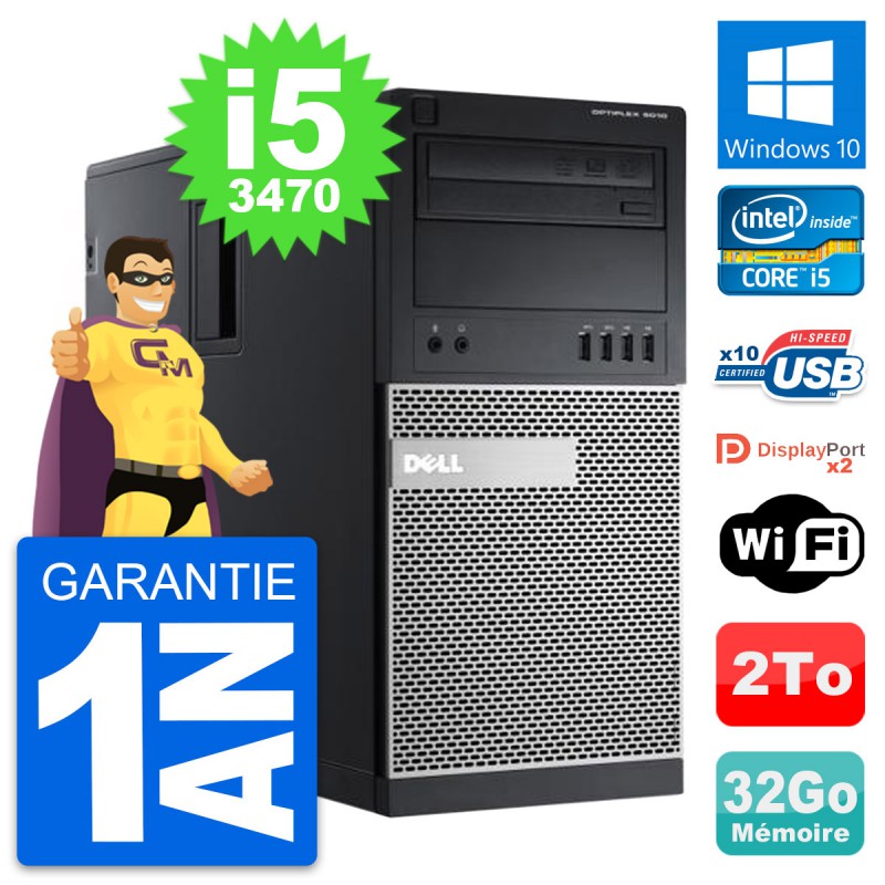 PC Tour Dell OptiPlex 9010 - Intel Core i5-3470 3.2 Ghz (6 Mo) - 32 Go DDR3 - Disque Dur 3,5" 2 To - Graveur DVD - Clef Wifi USB - Windows 10 - Garantie 1 an.