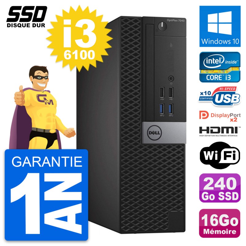 PC Dell OptiPlex 7040 SFF Intel i3-6100 RAM 16Go SSD 240Go HDMI Windows 10 Wifi