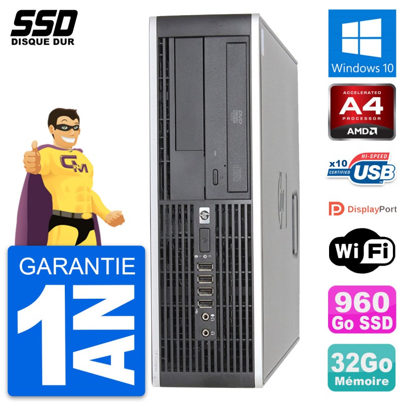 PC HP Compaq 6305 Pro SFF - AMD A4-Series A4-5300B 3.4 Ghz (1 Mo) - 32 Go DDR3 - SSD 960 Go - Graveur DVD - Clef Wifi USB - Windows 10 - Garantie 1 an.