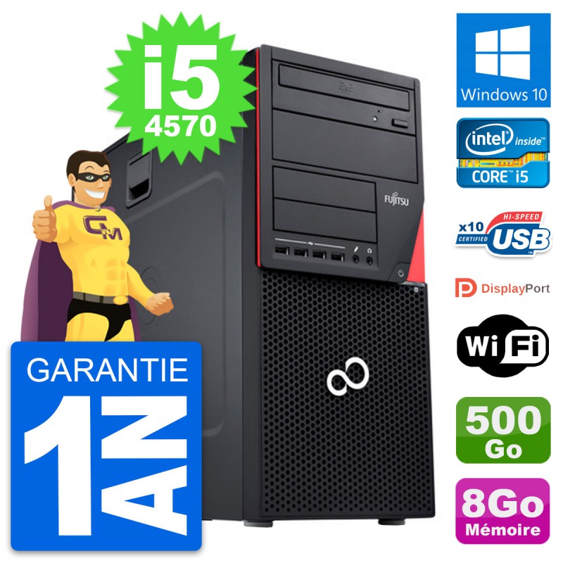 PC Tour Fujitsu Esprimo P720 - Intel Core i5-4570 3.2 Ghz (6 Mo) - 8 Go DDR3 - Disque Dur 3,5" 500 Go - Graveur DVD - Clef Wifi USB - Windows 10 - Garantie 1 an.