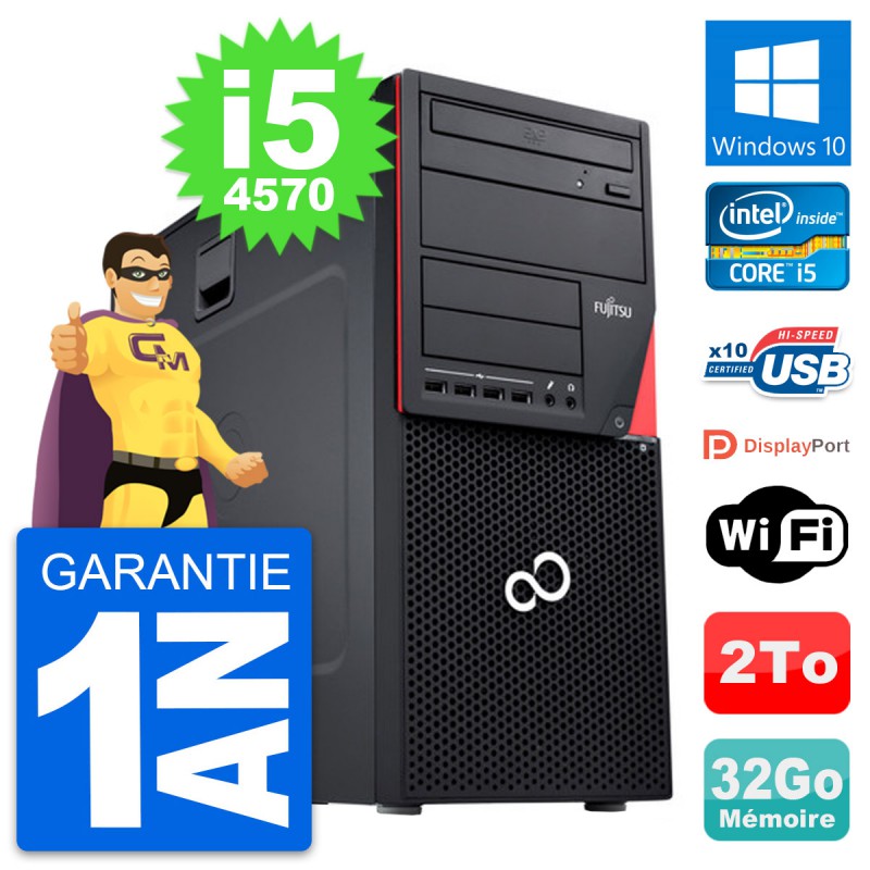 PC Tour Fujitsu Esprimo P720 - Intel Core i5-4570 3.2 Ghz (6 Mo) - 32 Go DDR3 - Disque Dur 3,5" 2 To - Graveur DVD - Clef Wifi USB - Windows 10 - Garantie 1 an.