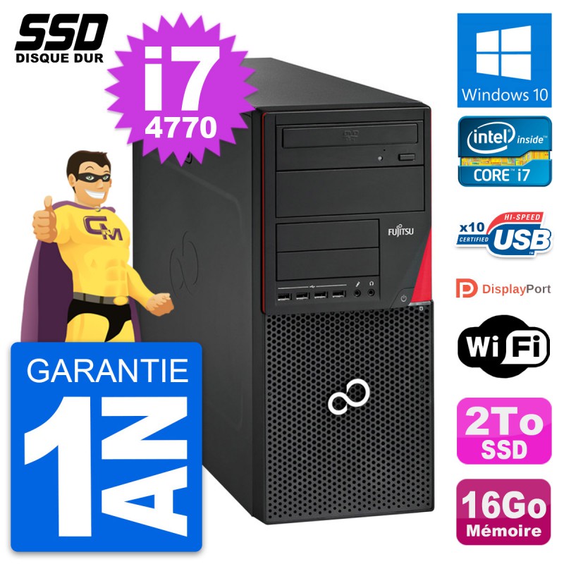PC Tour Fujitsu Esprimo P720 - Intel Core i7-4770 3.4 Ghz (8 Mo) - 16 Go DDR3 - SSD 2 To - Graveur DVD - Clef Wifi USB - Windows 10 - Garantie 1 an.