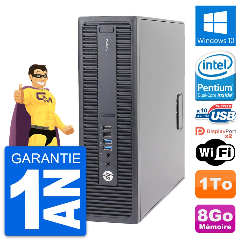 PC HP ProDesk 600 G2 SFF - Intel Pentium Dual-Core G4400 3.3 Ghz (3 Mo) - 8 Go DDR4 - Disque Dur 3,5" 1 To - Clef Wifi USB - Windows 10 - Garantie 1 an.
