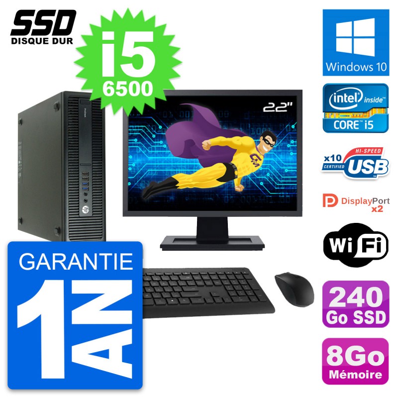 PC HP ProDesk 600 G2 SFF - Intel Core i5-6500 3.2 Ghz (6 Mo) - 8 Go DDR4 - SSD 240 Go - Clef Wifi USB - Windows 10 - Livré avec Ecran 22" + clavier + souris (Marques et modèles variables) - Garantie 1 an.