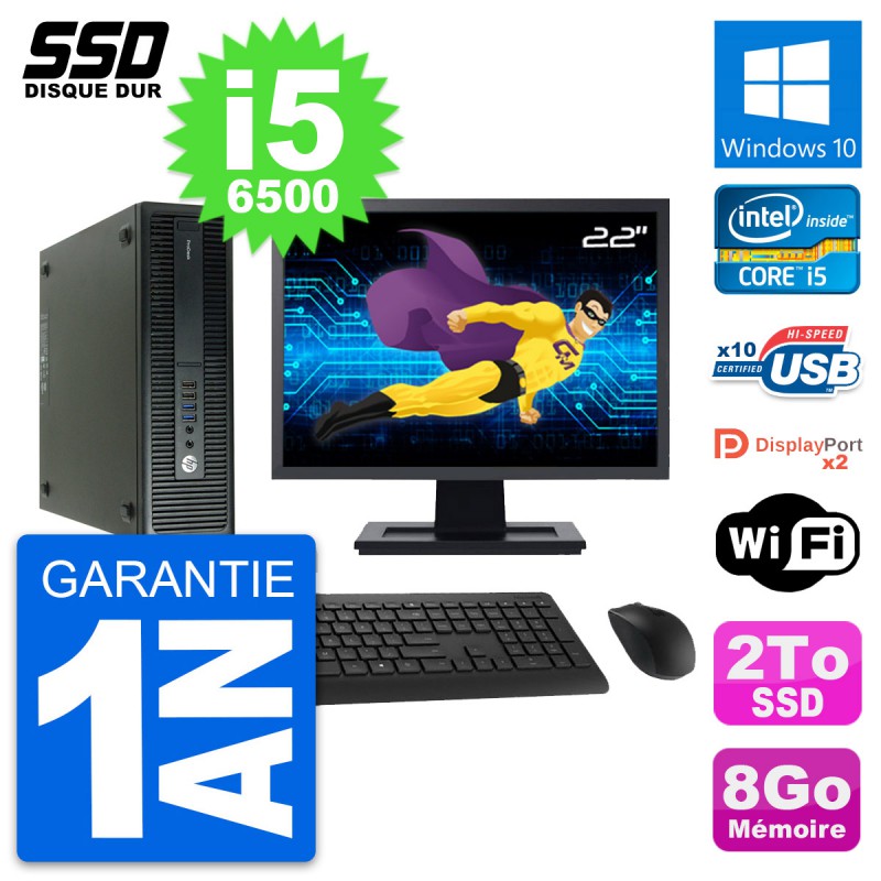 PC HP ProDesk 600 G2 SFF - Intel Core i5-6500 3.2 Ghz (6 Mo) - 8 Go DDR4 - SSD 2 To - Clef Wifi USB - Windows 10 - Livré avec Ecran 22" + clavier + souris (Marques et modèles variables) - Garantie 1 an.