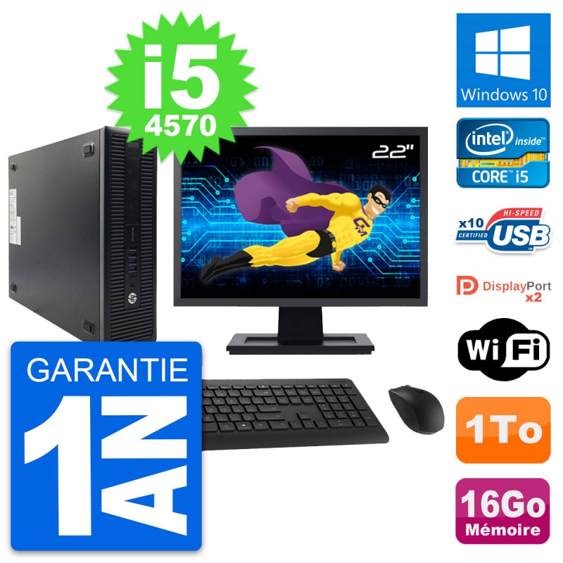 PC HP ProDesk 600 G1 SFF - Intel Core i5-4570 3.2 Ghz (6 Mo) - 16 Go DDR3 - Disque Dur 3,5" 1 To - Clef Wifi USB - Windows 10 - Livré avec Ecran 22" + clavier + souris (Marques et modèles variables) - Garantie 1 an.