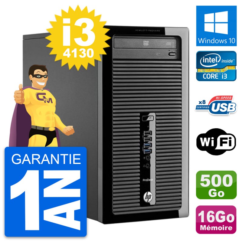 PC Tour HP ProDesk 400 G1 MT - Intel Core i3-4130 3.4 Ghz (3 Mo) - 16 Go DDR3 - Disque Dur 3,5" 500 Go - Clef Wifi USB - Graveur DVD - Windows 10 - Garantie 1 an.