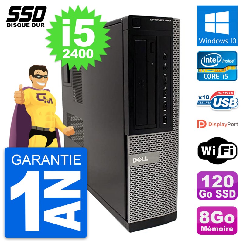 PC Dell OptiPlex 990 DT - Intel Core i5-2400 3.1 Ghz (6 Mo) - 8 Go DDR3 - SSD 120 Go - Graveur DVD - Clef Wifi USB - Windows 10 - Garantie 1 an.