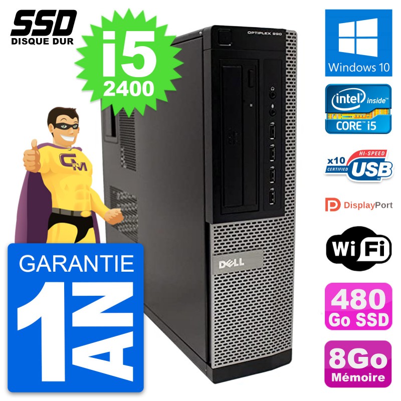 PC Dell OptiPlex 990 DT - Intel Core i5-2400 3.1 Ghz (6 Mo) - 8 Go DDR3 - SSD 480 Go - Graveur DVD - Clef Wifi USB - Windows 10 - Garantie 1 an.