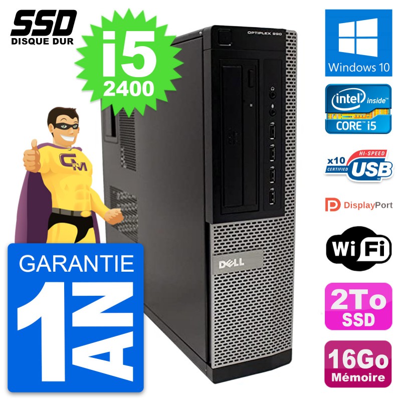 PC Dell OptiPlex 990 DT - Intel Core i5-2400 3.1 Ghz (6 Mo) - 16 Go DDR3 - SSD 2 To - Graveur DVD - Clef Wifi USB - Windows 10 - Garantie 1 an.