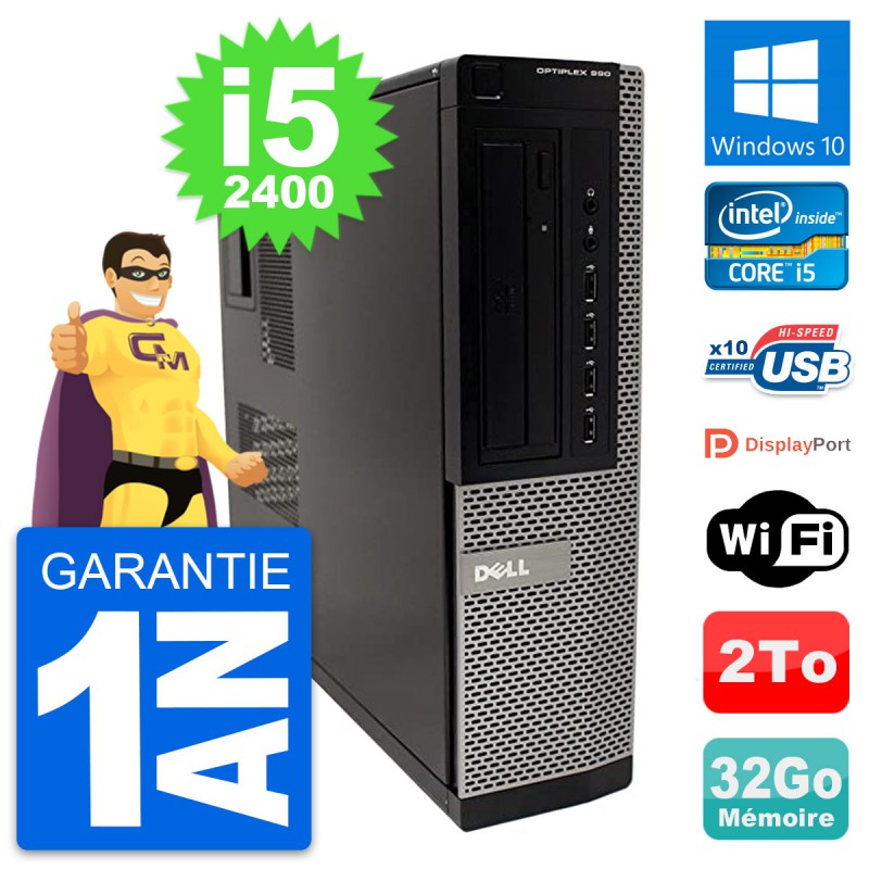 PC Dell OptiPlex 990 DT Intel i5-2400 RAM 32Go Disque Dur 2To Windows 10 Wifi