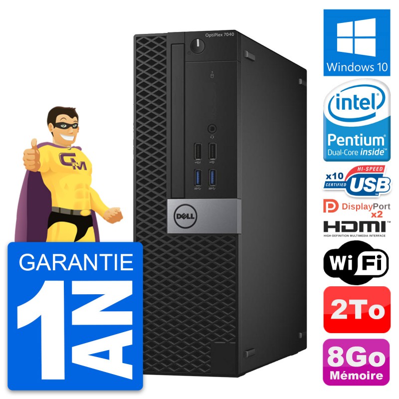 PC Dell OptiPlex 7040 SFF - Intel Pentium Dual-Core G4400 3.3 Ghz (3 Mo) - 8 Go DDR4 - Disque Dur 3,5" 2 To - Clef Wifi USB - Windows 10 - Garantie 1 an.