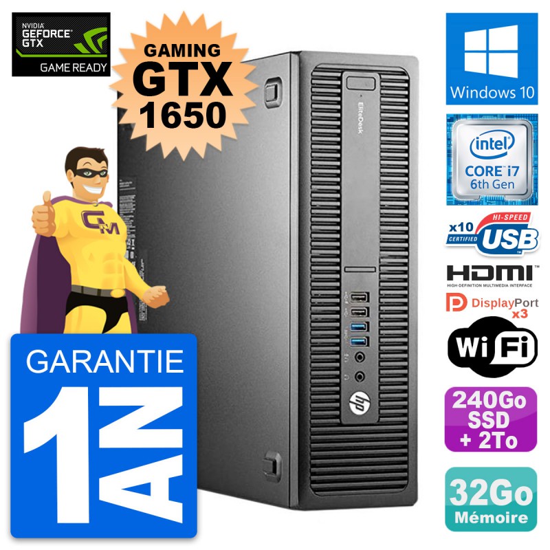 PC Gaming HP EliteDesk 800 G2 SFF - Intel Core i7-6700 3.4 Ghz - Nvidia GTX 1650 4Go - 32 Go DDR4 - SSD 240 Go + Disque dur 2To - Graveur DVD - Clef Wifi USB - Windows 10 - Garantie 1 an.
