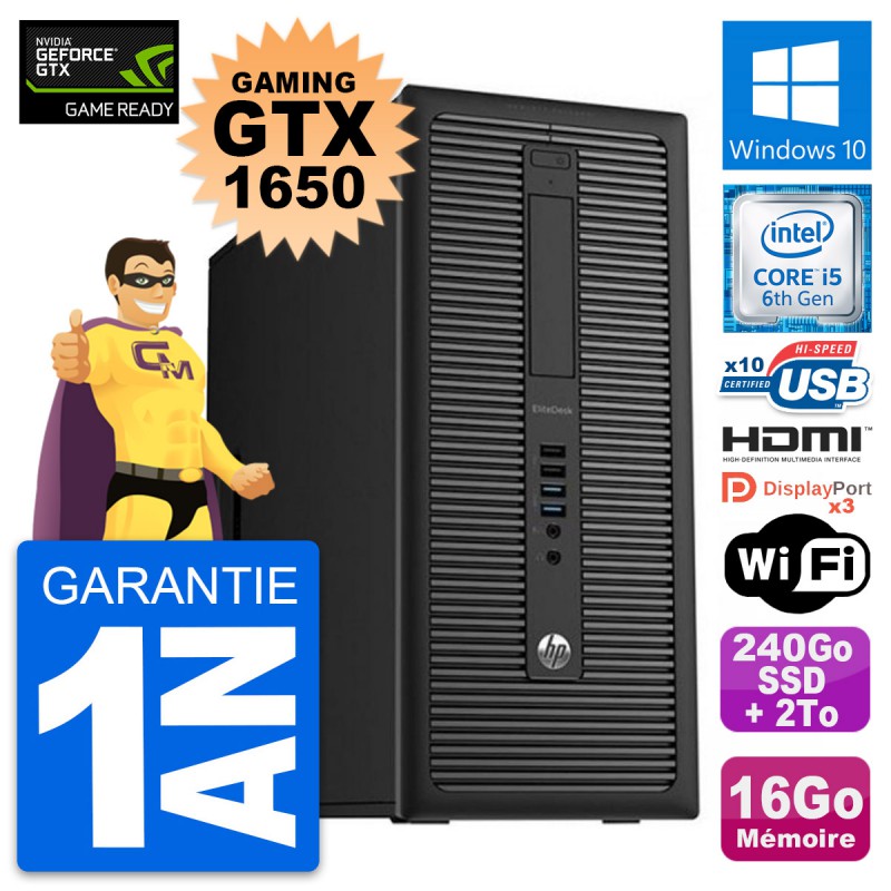 PC Gaming HP EliteDesk 800 G2 - Intel Core i5-6500 3.2 Ghz - Nvidia 1650 4Go - 16 Go DDR4 - SSD 240 Go + Disque dur 2 To - Graveur DVD - Clef Wifi USB - Windows 10 - Garantie 1 an.