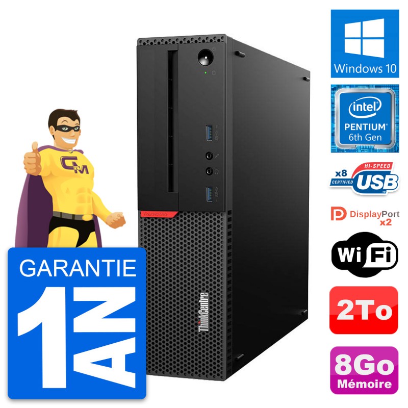 PC Lenovo ThinkCentre M800 SFF - Intel Pentium Dual-Core G4400 3.3 Ghz (3 Mo) - 8 Go DDR4 - Disque Dur 3,5" 2 To - Clef Wifi USB - Windows 10 - Garantie 1 an.