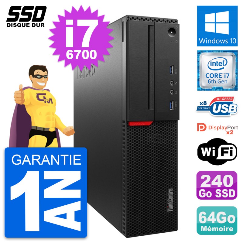 PC Lenovo ThinkCentre M800 SFF Intel i7-6700 RAM 64Go SSD 240Go Windows 10 Wifi
