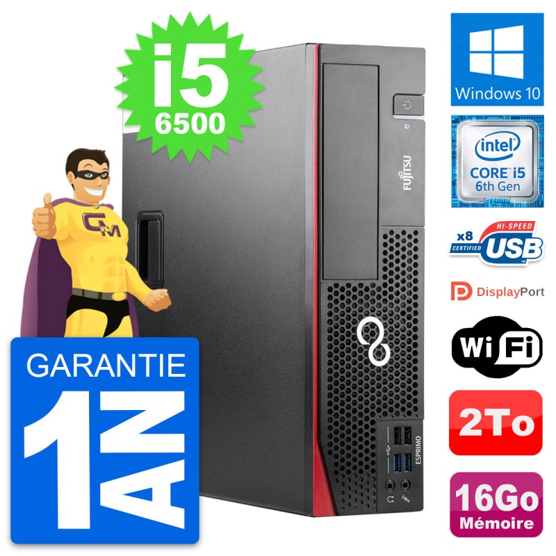 PC Fujitsu Esprimo D556 DT - Intel Core i5-6500 3.2 Ghz (6 Mo) - 16 Go DDR4 - Disque Dur 3,5" 2 To - Clef Wifi USB - Windows 10 - Garantie 1 an.