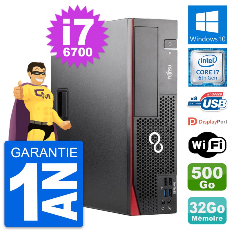 PC Fujitsu Esprimo D556 DT - Intel Core i7-6700 3.4 Ghz (8 Mo) - 32 Go DDR4 - Disque Dur 3,5" 500 Go - Clef Wifi USB - Windows 10 - Garantie 1 an.