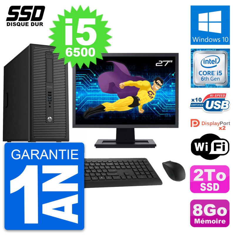 PC Tour HP EliteDesk 800 G2 Ecran 27" i5-6500 RAM 8Go SSD 2To Windows 10 Wifi