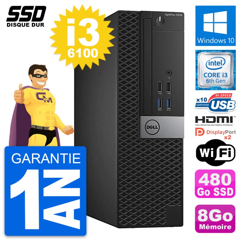 PC Dell OptiPlex 5040 SFF Intel i3-6100 RAM 8Go SSD 480Go HDMI Windows 10 Wifi