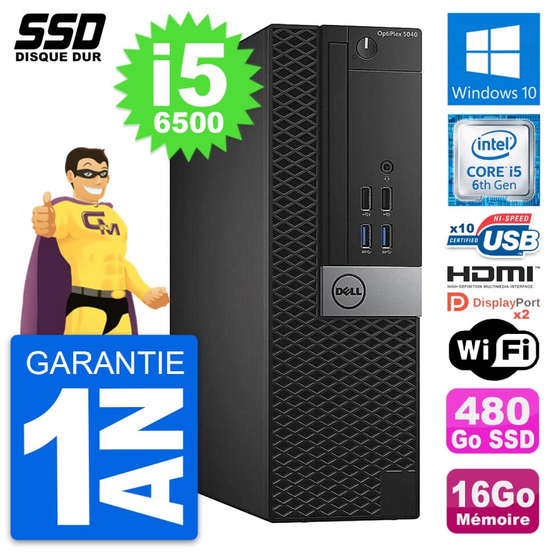 PC Dell OptiPlex 5040 SFF Intel i5-6500 RAM 16Go SSD 480Go HDMI Windows 10 Wifi