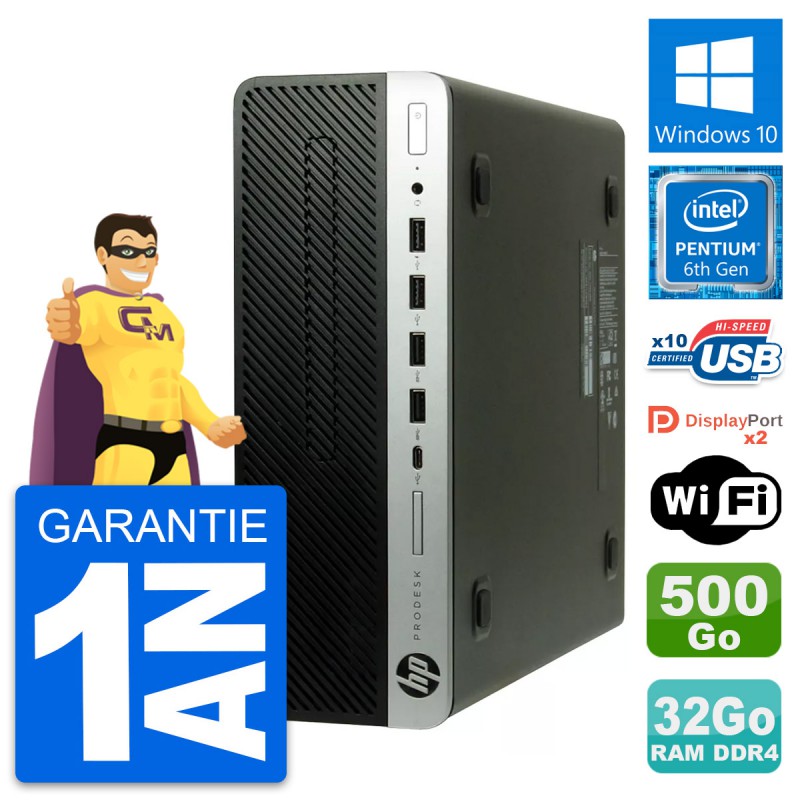 PC HP ProDesk 600 G3 SFF - Intel Pentium Dual-Core G4400 3.3 Ghz (3 Mo) - 32 Go DDR4 - Disque Dur 3,5" 500 Go - Clef Wifi USB - Windows 10 - Garantie 1 an.