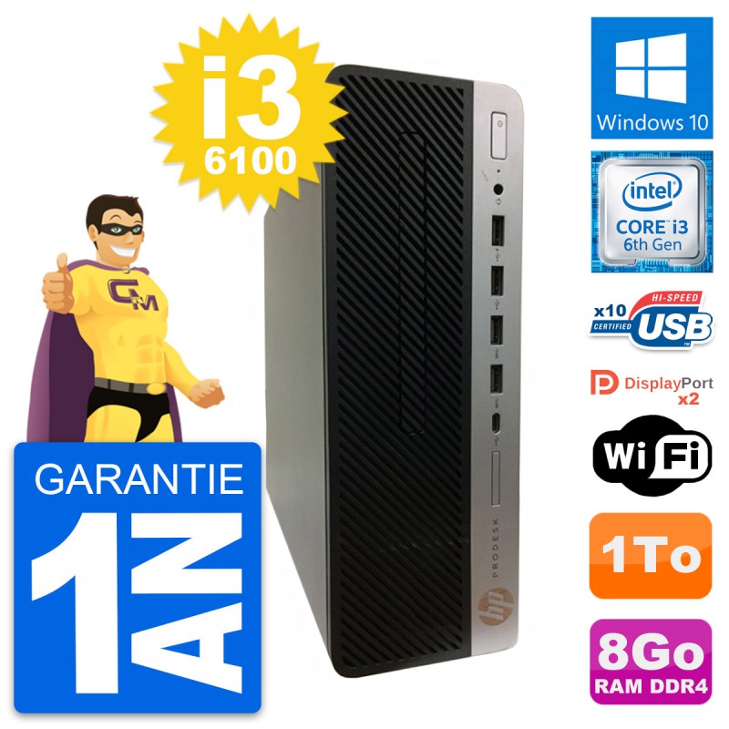 PC HP ProDesk 600 G3 SFF Intel i3-6100 RAM 8Go Disque Dur 1To Windows 10 Wifi