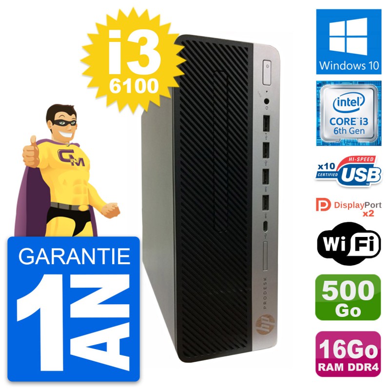PC HP ProDesk 600 G3 SFF Intel i3-6100 RAM 16Go Disque Dur 500Go Windows 10 Wifi
