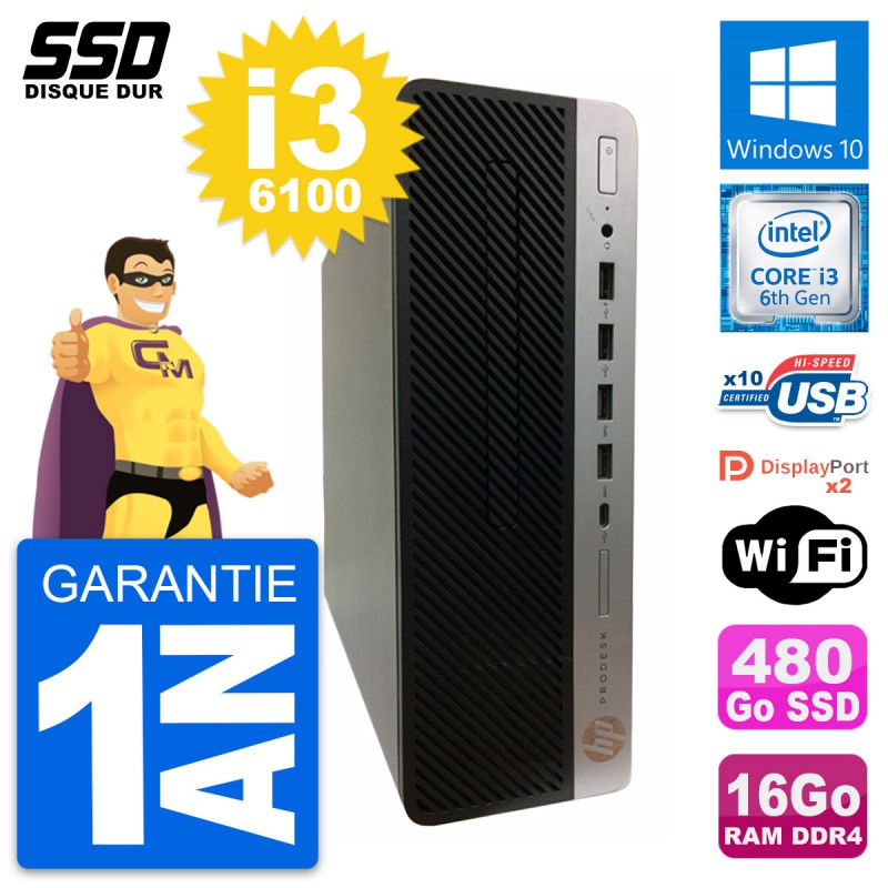 PC HP ProDesk 600 G3 SFF Intel Core i3-6100 RAM 16Go SSD 480Go Windows 10 Wifi