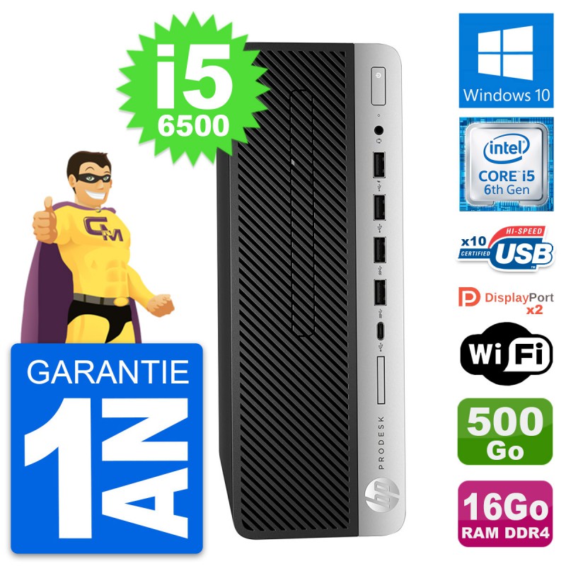PC HP ProDesk 600 G3 SFF Intel i5-6500 RAM 16Go Disque Dur 500Go Windows 10 Wifi