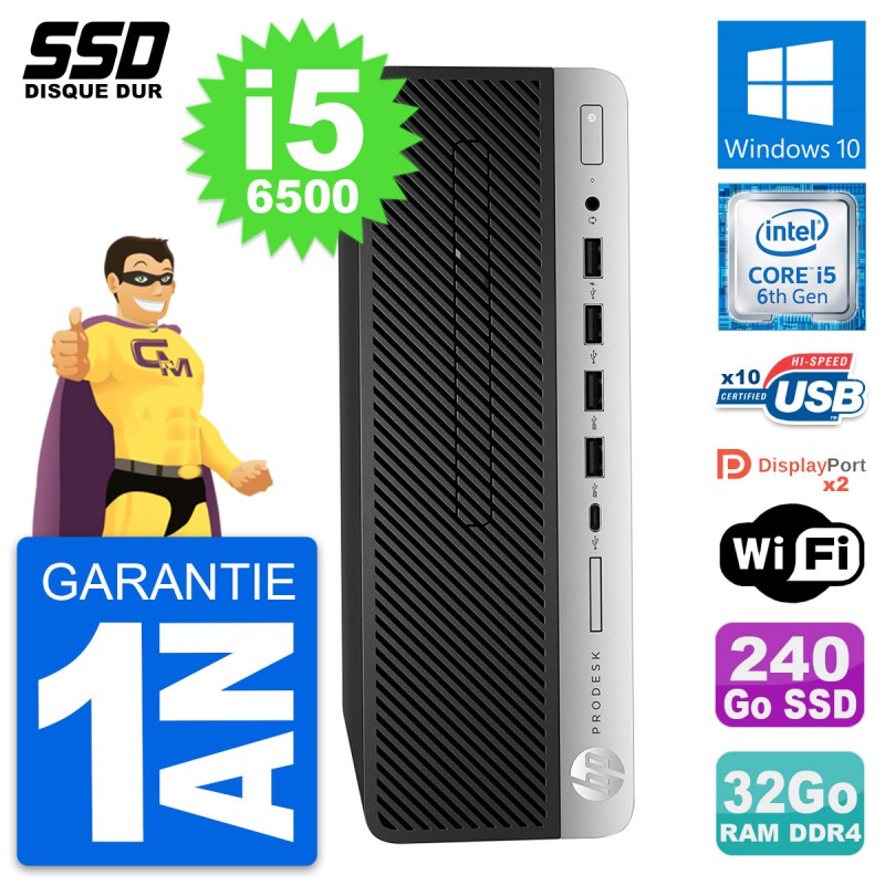 PC HP ProDesk 600 G3 SFF - Intel Core i5-6500 3.2 Ghz (6 Mo) - 32 Go DDR4 - SSD 240 Go - Clef Wifi USB - Windows 10 - Garantie 1 an.