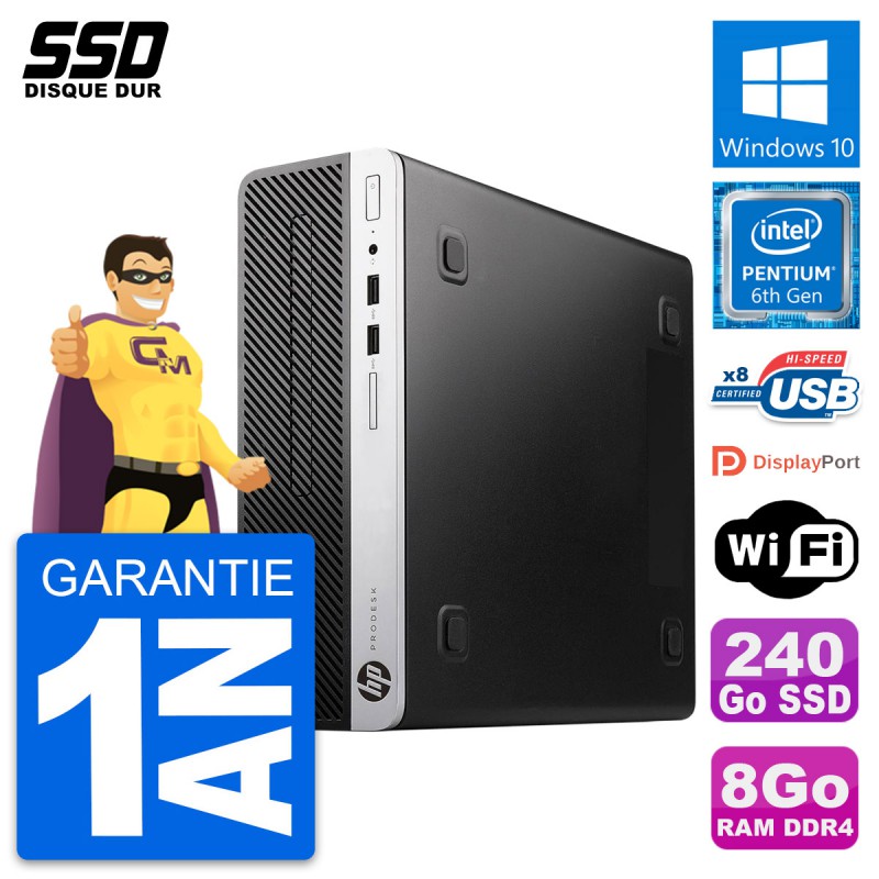 PC HP ProDesk 400 G4 SFF Intel Pentium G4400 RAM 8Go SSD 240Go Windows 10 Wifi