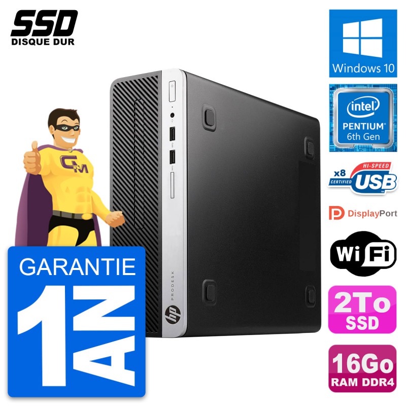 PC HP ProDesk 400 G4 SFF Intel Pentium G4400 RAM 16Go SSD 2To Windows 10 Wifi