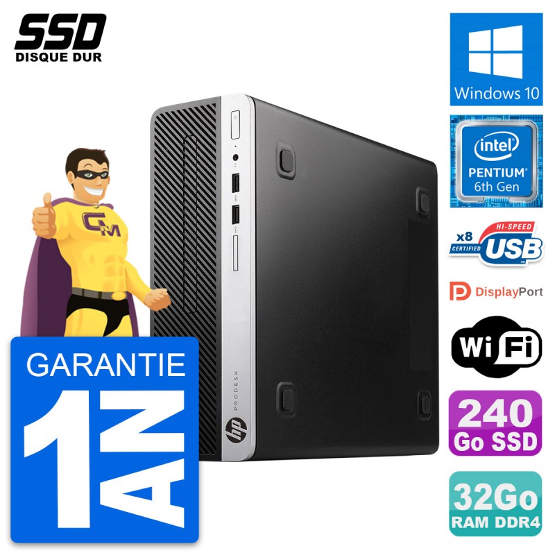 PC HP ProDesk 400 G4 SFF Intel Pentium G4400 RAM 32Go SSD 240Go Windows 10 Wifi