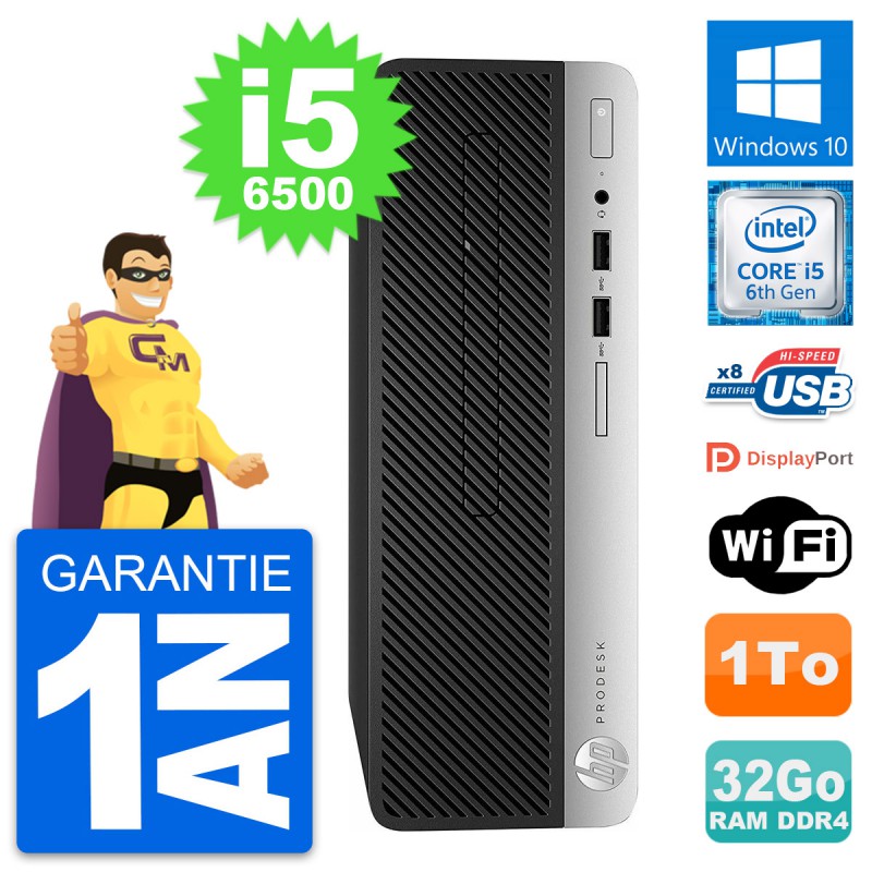PC HP ProDesk 400 G4 SFF Intel Core i5-6500 RAM 32Go Disque 1To Windows 10 Wifi