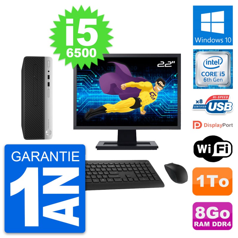 PC HP ProDesk 400 G4 SFF - Intel Core i5-6500 3.2 Ghz (6 Mo) - 8 Go DDR4 - Disque Dur 3,5" 1 To - Clef Wifi USB - Windows 10 - Livré avec Ecran 22" + clavier + souris (Marques et modèles variables) - Garantie 1 an.