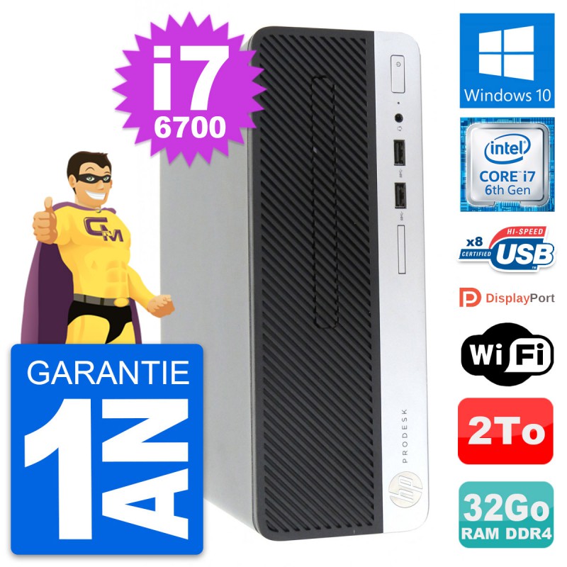 PC HP ProDesk 400 G4 SFF Intel Core i7-6700 RAM 32Go Disque 2To Windows 10 Wifi