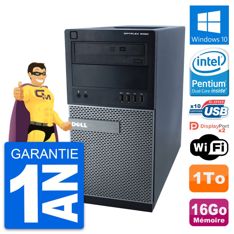 PC Dell Optiplex 9020 MT (Moyenne Tour) - Intel Pentium Dual-Core G3220 3.0 Ghz (3 Mo) - 16 Go DDR3 - Disque Dur 3,5" 1 To - Graveur DVD - Clef Wifi USB - Windows 10 - Garantie 1 an.