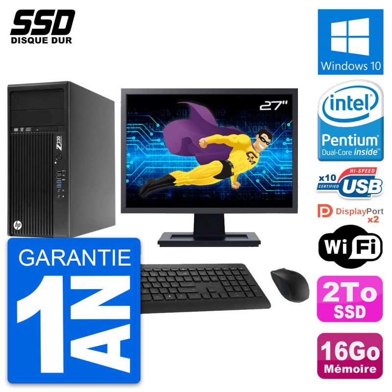 PC Tour HP Z230 Ecran 27" Intel Pentium G3220 RAM 16Go SSD 2To Windows 10 Wifi