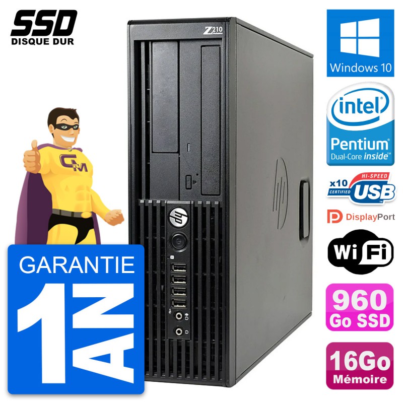 PC HP WorkStation Z210 SFF Intel Pentium G630 RAM 16Go SSD 960Go Windows 10 Wifi