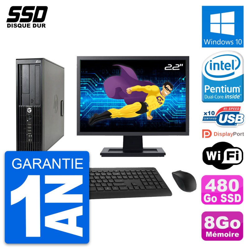 PC HP Z210 SFF Ecran 22" Intel Pentium G630 RAM 8Go SSD 480Go Windows 10 Wifi
