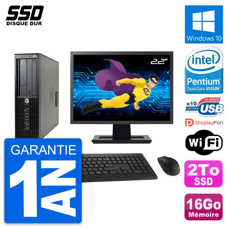 PC HP Z210 SFF Ecran 22" Intel Pentium G630 RAM 16Go SSD 2To Windows 10 Wifi